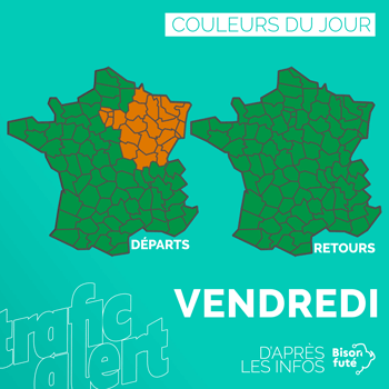 BRIEF Troisième week-end de vacances, toutes les zones en congés et un trafic concentré sur le samedi aux abords des Alpes en rouge, attention au trafic aussi sur l’ouest.