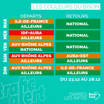 À RETENIR Les départs pour le réveillon, orange et rouge en Île-de-France et Auvergne-Rhône-Alpes selon Bison Futé.